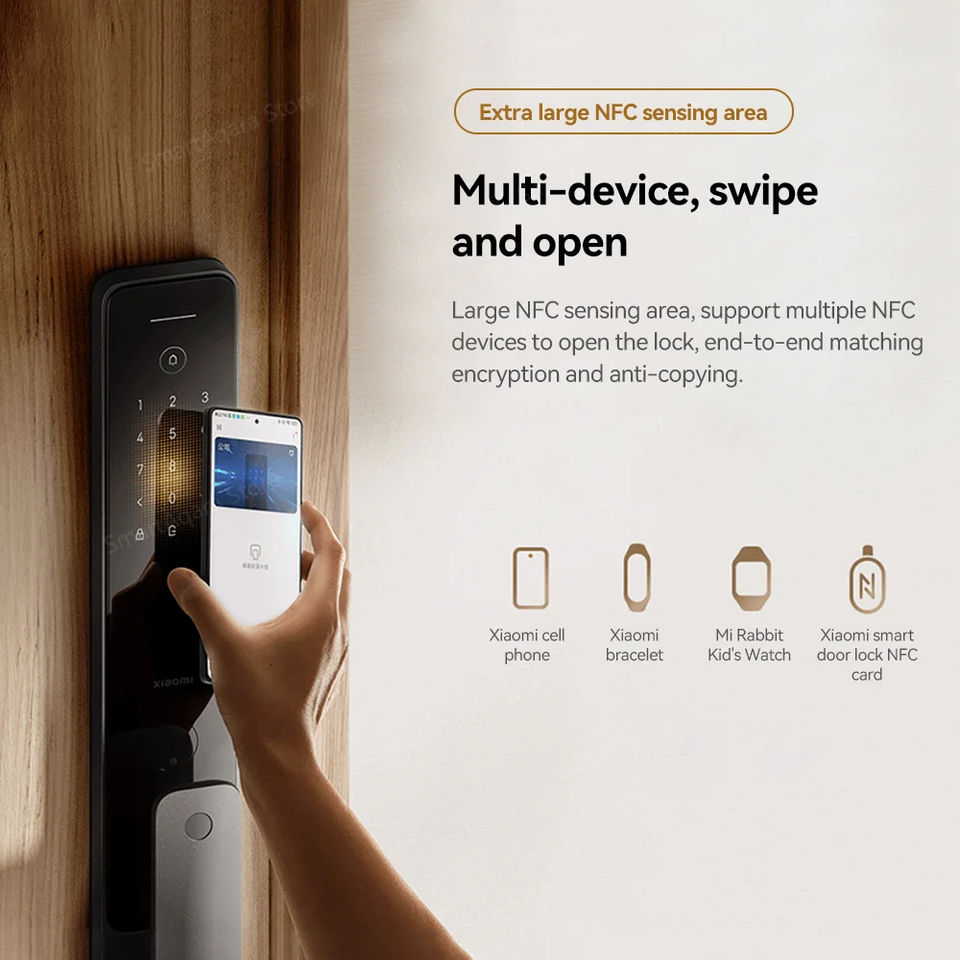 Xiaomi-Cerradura de puerta inteligente completamente automática, timbre con reducción de ruido, wifi, Bluetooth, NFC, desbloqueo de huellas dactilares, Mi Home
