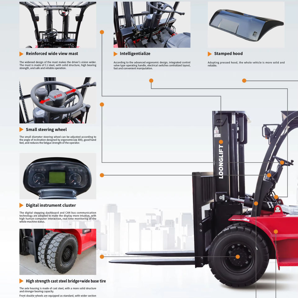Montacargas Diésel de 5 Toneladas con Motor Xichai, Automático, con Desplazador Lateral, Montacargas Diésel 5t