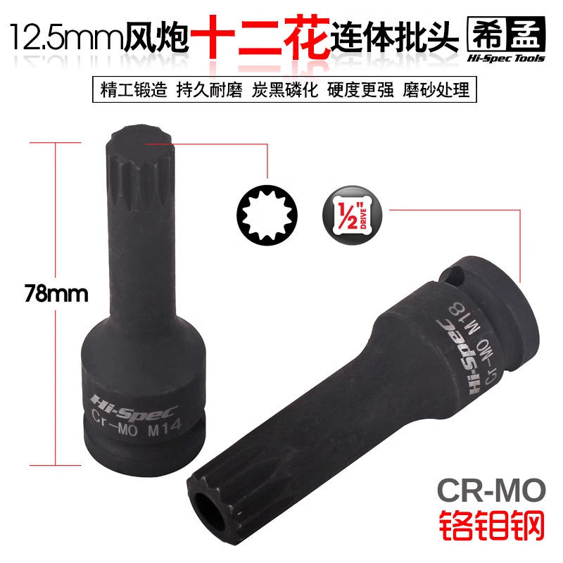 Llave de impacto Ximeng de 12 puntas con punta de acero Cr-Mo de 1/2 pulgada para herramientas de reparación de automóviles