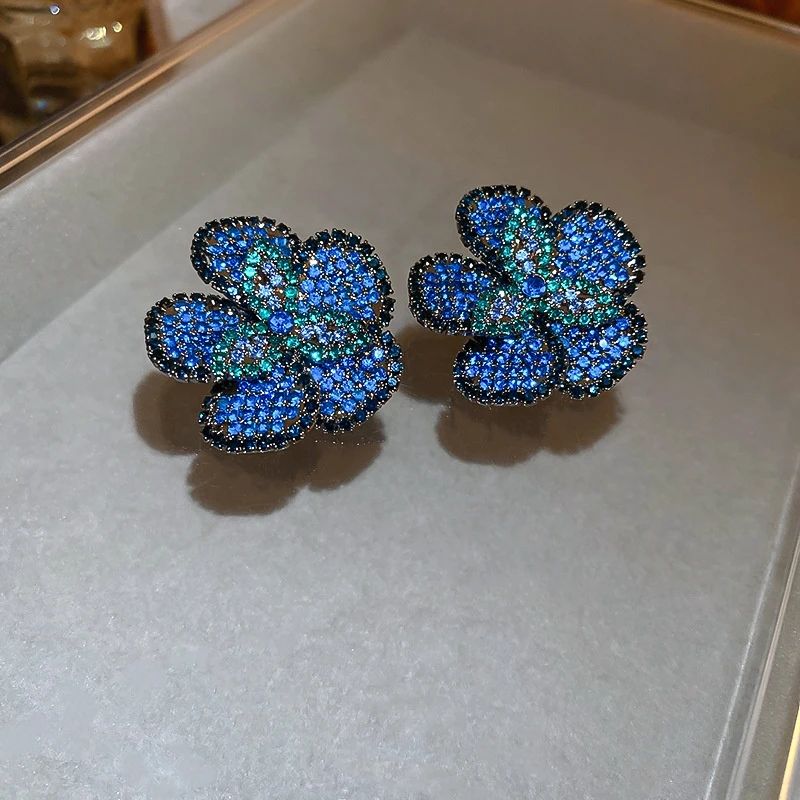 Xina-pendientes de cristal con diamantes de imitación para mujer, joyería de boda para fiesta, flor azul