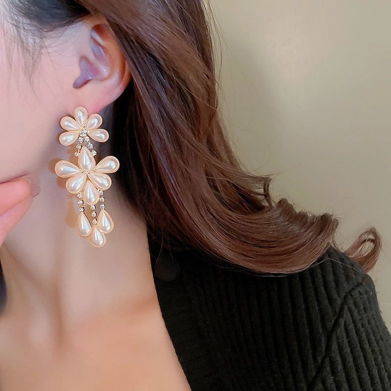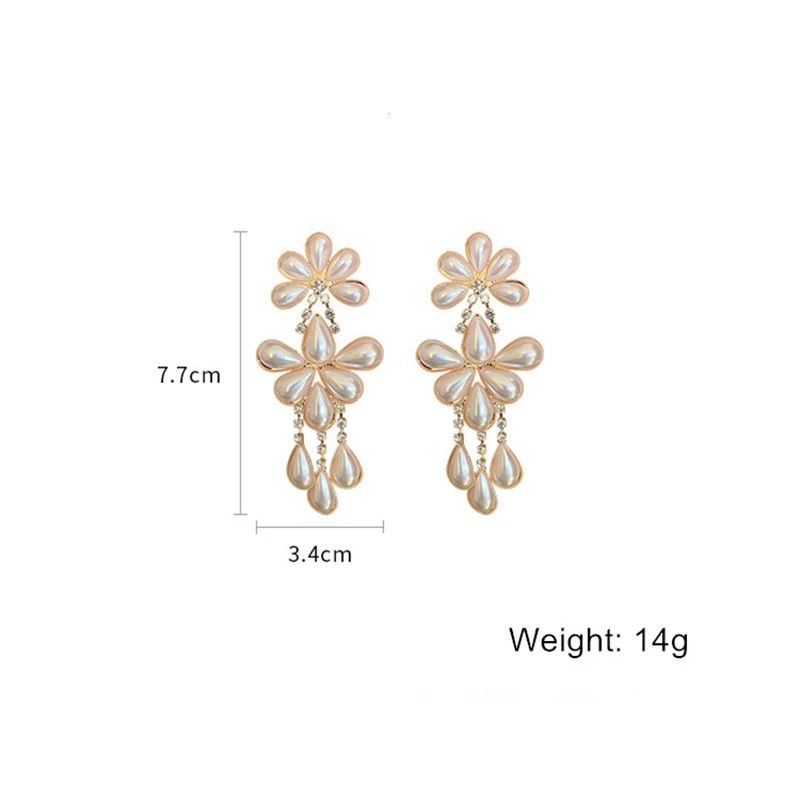 Xina-pendientes colgantes de flores y perlas para mujer, de estilo coreano, con diamantes de imitación, joyería