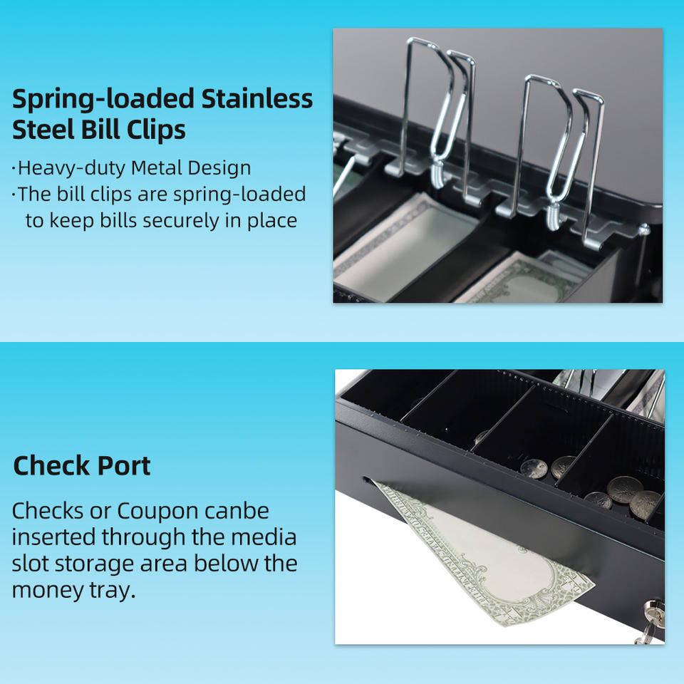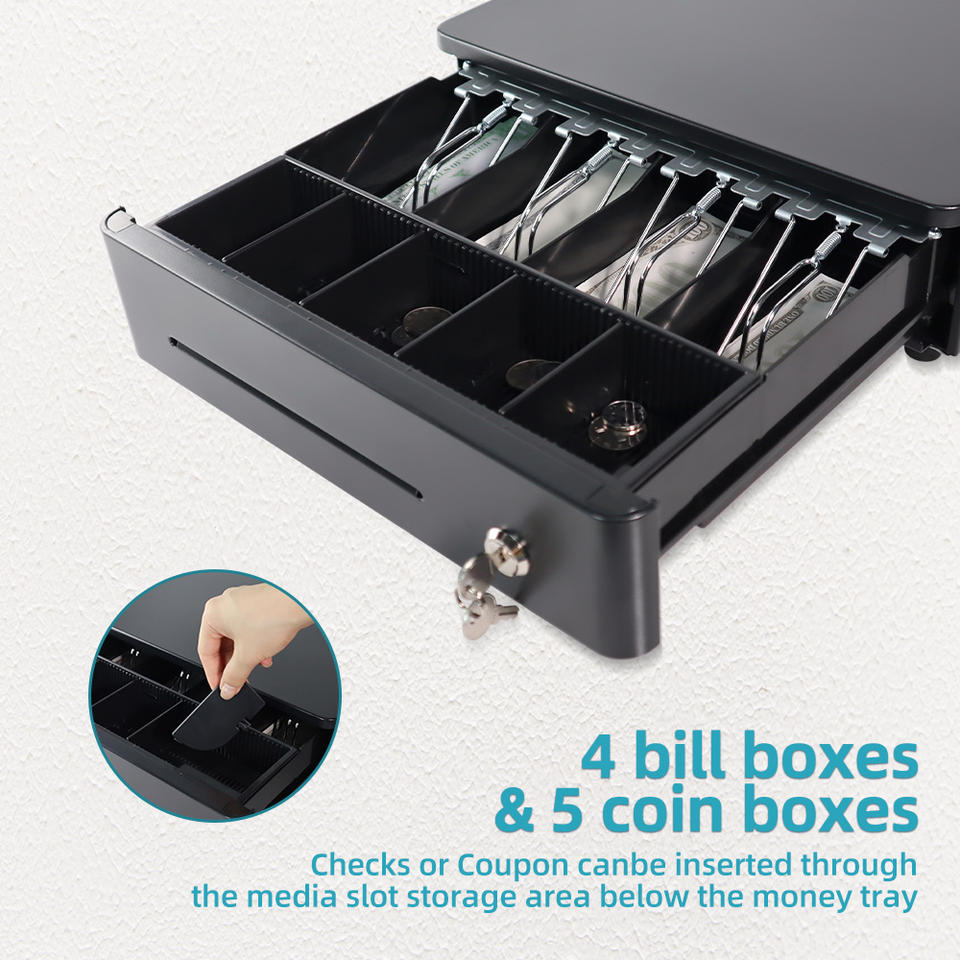 Cajón de moneda compacto Xincode, cajón de efectivo, caja registradora, insertar dinero, 4 billetes, 5 monedas, bandeja, máquina de cajero, cajón de billetes,