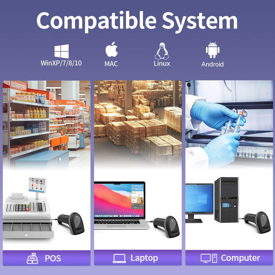 Lector de Códigos de Barras con Cable 1D Xincode Factory, Escáneres de Códigos QR Portátiles, Escáner de Códigos de Barras 2D, Pistola de Escaneo de Códigos de Barras USB para Inventario