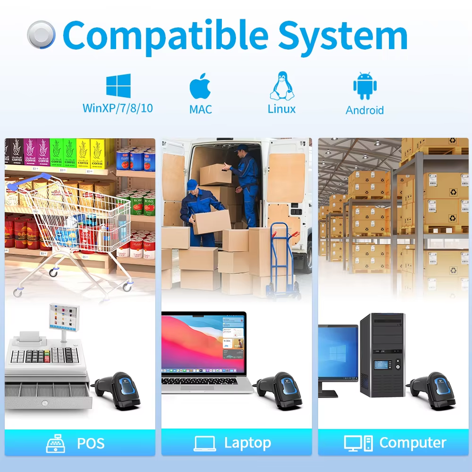 Escáner de código de barras láser 1D con cable Xincode Inventario Sensor de imagen 2D inalámbrico portátil Lector de código Qr Escaneo para almacén de supermercado