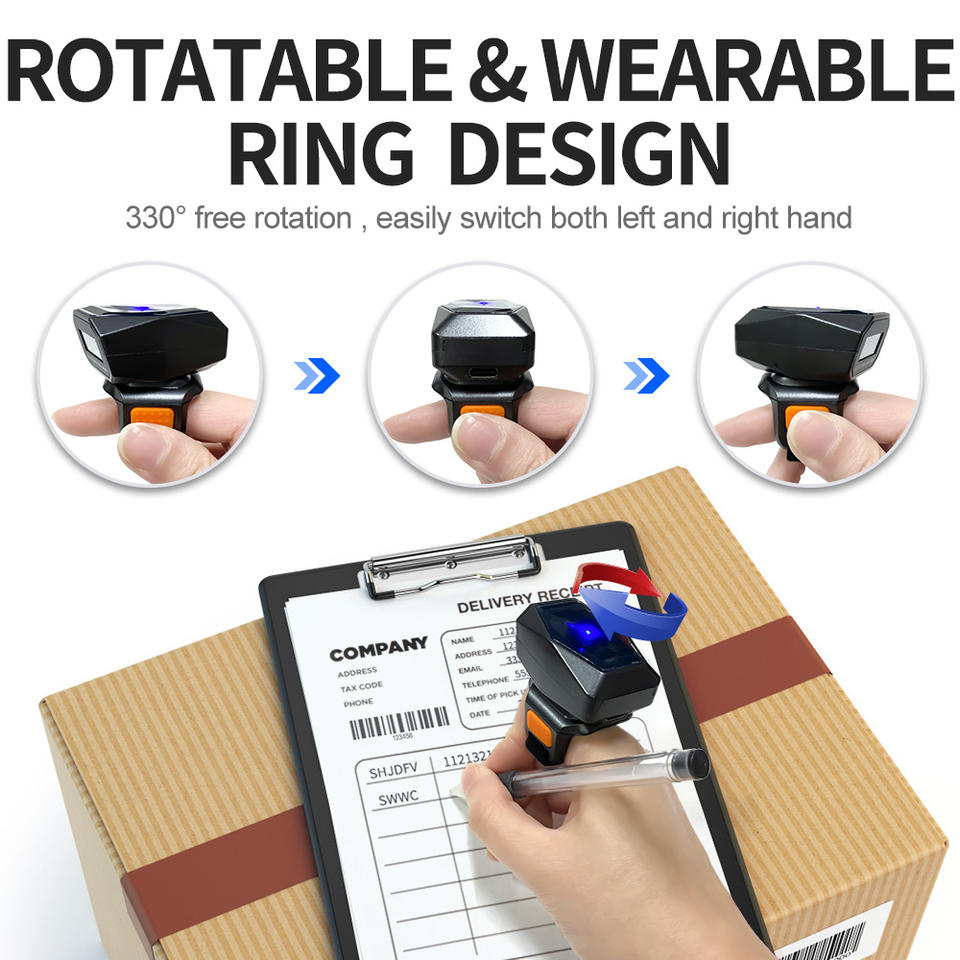Lector de Códigos de Barras Inalámbrico Bluetooth Xincode, Mini Lector de Códigos QR de Dedo, Escáner de Códigos de Barras Portátil y Usable en Anillo