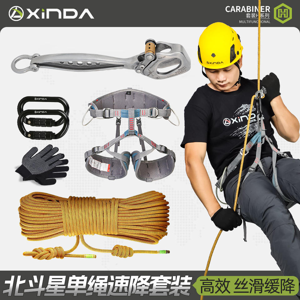 Descensor de cuerda individual Xinda Beidouxing HH-9776 con bloqueo automático para escalada, montañismo, descenso en caída y uso en exteriores.