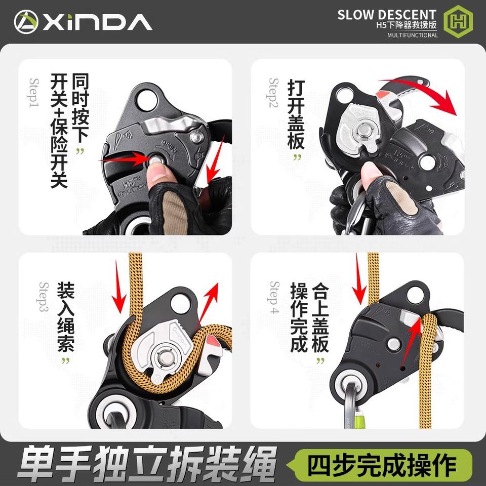 Equipo de Escalada Xinda H5pro Descender Rescue Edition de Aleación de Aluminio con Sistema Antipánico