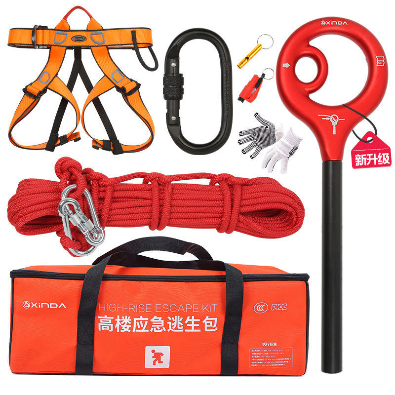 Kit de escape de altura Xinda, cuerda de acero de 8 mm y 10 m, conjunto de rescate de seguridad contra incendios para escape de emergencia en el hogar