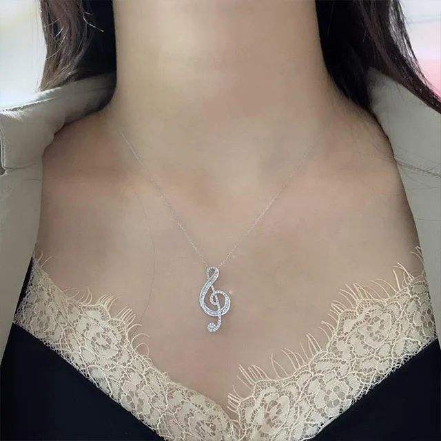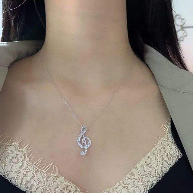 Collar Xinfly Personalizado con Colgante de Nota Musical Clave de Sol en Oro de 18k y Diamante Natural de 0.35ct para Mujer