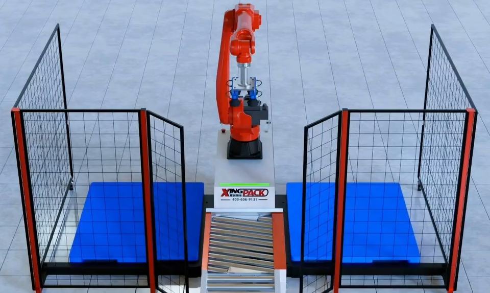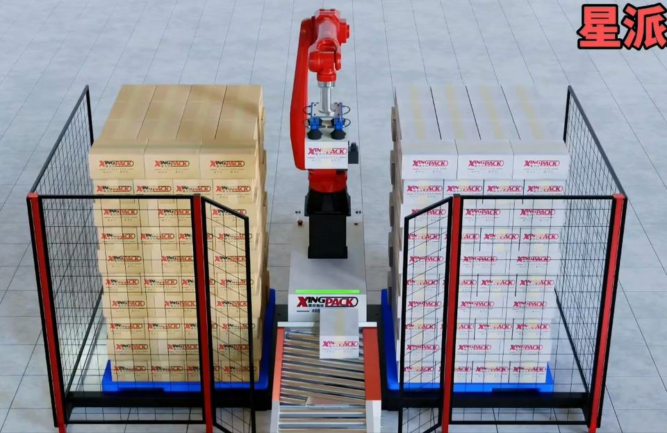 Paletizador de robot móvil automático XingPack con cerca y función de elevación para cajas de cartón