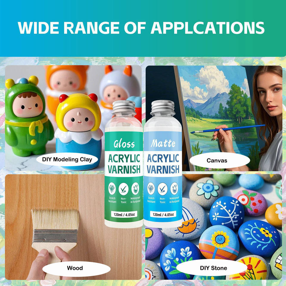 Característica:El barniz para arcilla de secado al aire se seca rápidamente hasta obtener un acabado transparente.