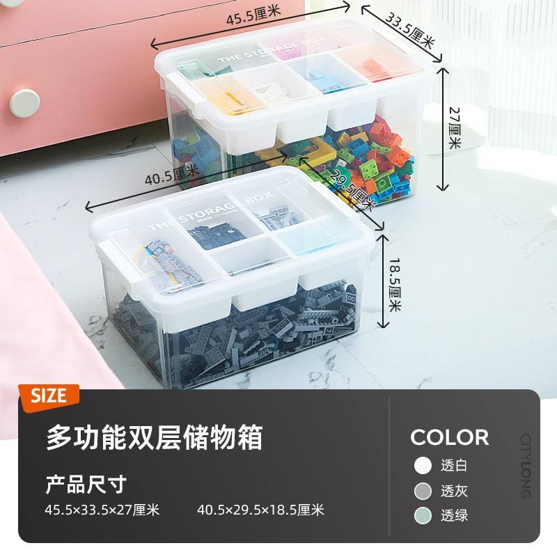 Caja de almacenamiento de doble capa Xitianlong de 40L-50L, organizador transparente de juguetes para niños, para bloques de construcción y peluches
