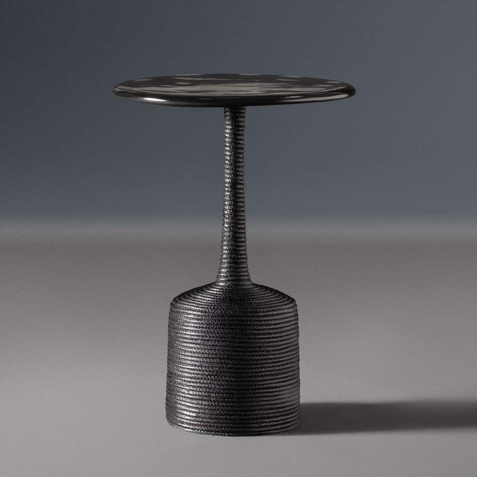 Mesa auxiliar de metal de exquisita elaboración que realza el aspecto general de residencias sofisticadas