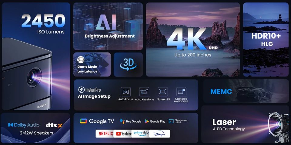 3D listo, Internet listo, Altavoces incorporados, Estéreo de alta fidelidad, Proyector de Google TVCaracterística