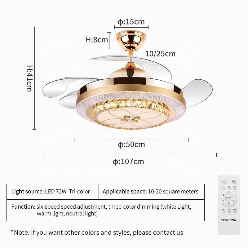 Y147 Ventiladores de techo de cristal de lujo Control remoto Ventilador de techo de cristal invisible de 42 pulgadas
