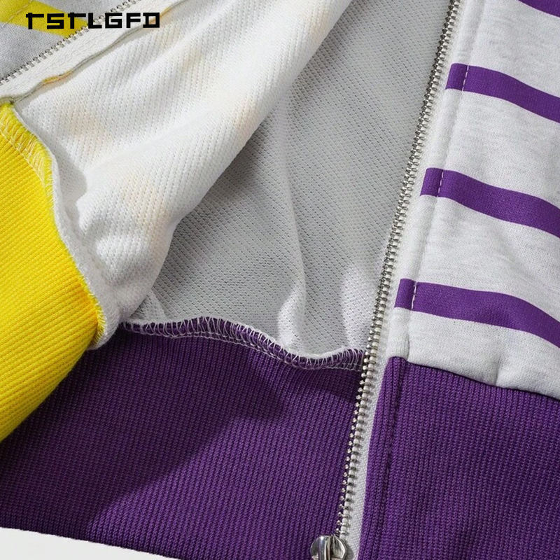 Sudadera con capucha Y2K a rayas bordada con cremallera, mangas con pedrería y estampado de llamas, corte regular, 100% algodón, marca de moda de etiqueta privada