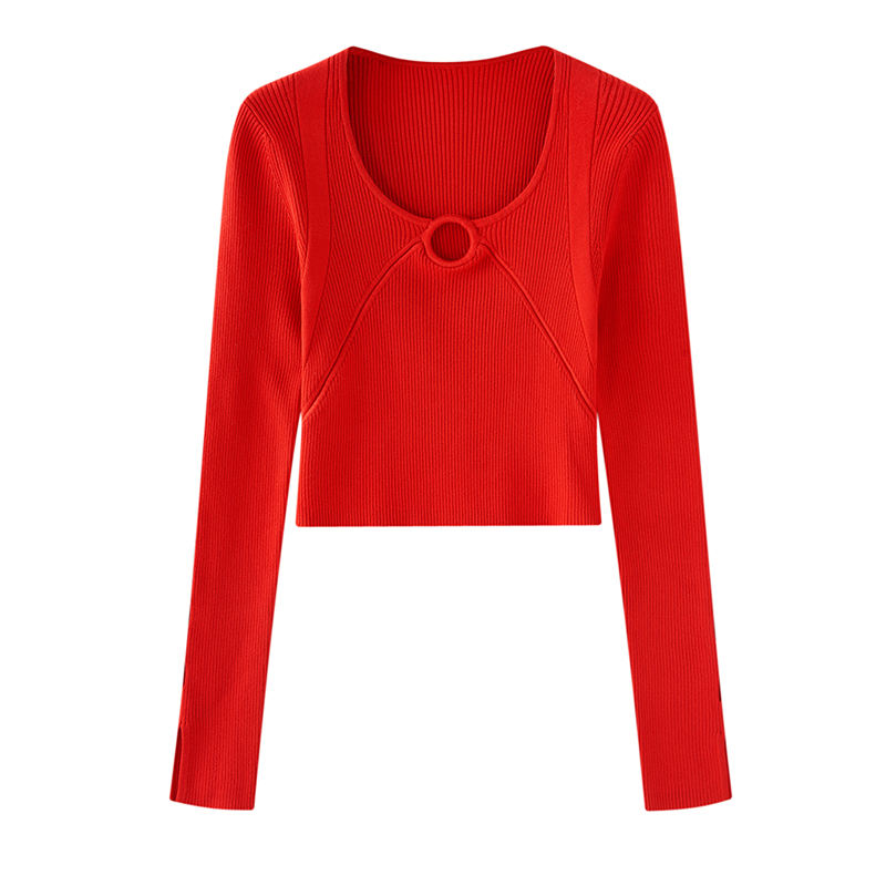 Jersey de manga larga estilo Y2K, Jersey de punto elegante, cuello redondo, suéter corto personalizable para primavera y otoño para mujer
