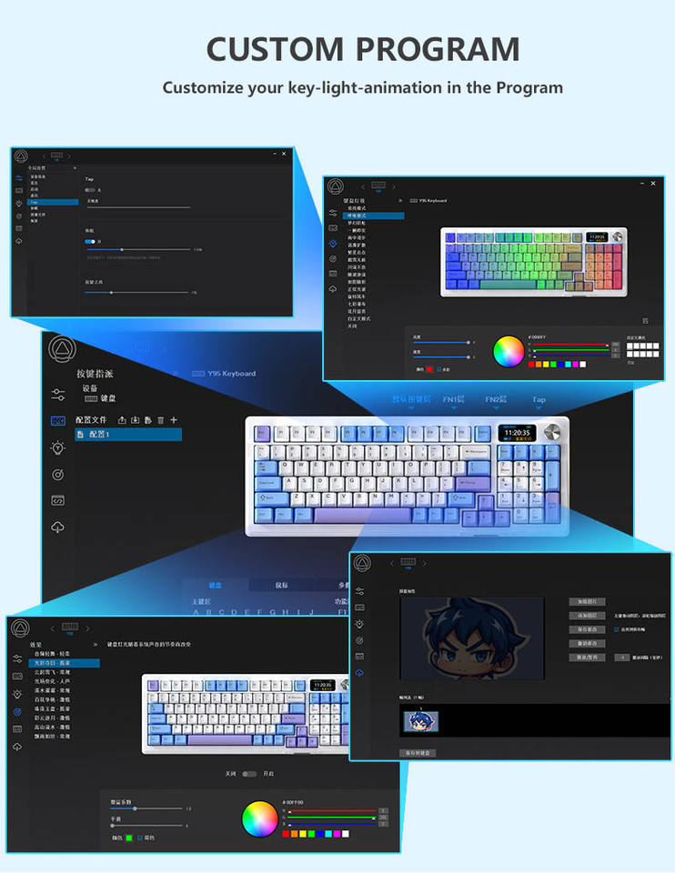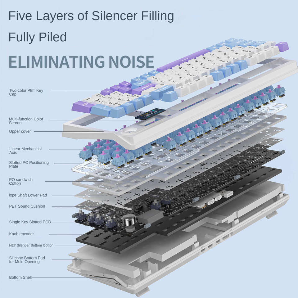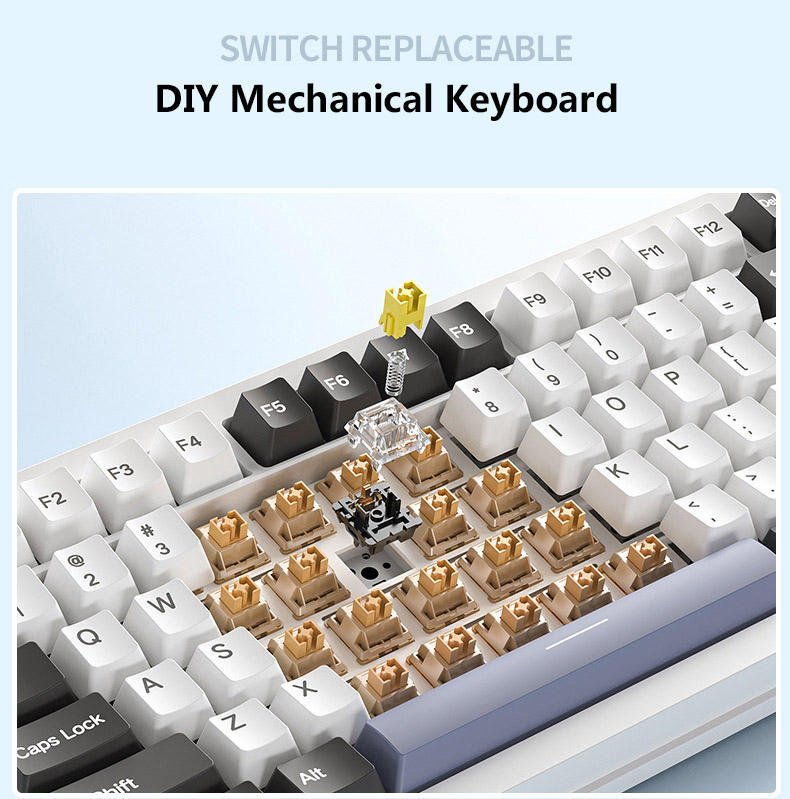 Teclas mecánicas de aluminio PBT Y95 con combinación de colores, anticolisión en todas las teclas, intercambiables en caliente, multimodo, con cable/inalámbricas, retroiluminación RGB, USB-C