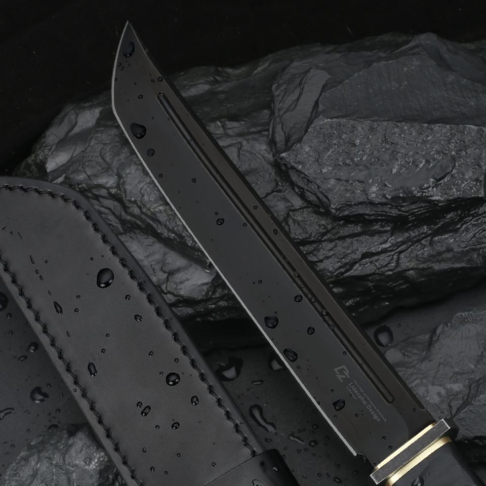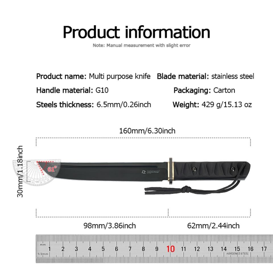 YA.SHA SAMURAI BLACK Cuchillo de Bolsillo Táctico de Combate Personalizable OEM, Hoja Fija de Acero Inoxidable de Alta Calidad, Borde Recto G10