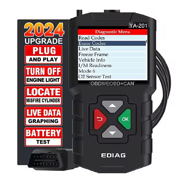 Lector de código automático YA201 OBD2, herramienta profesional de diagnóstico de coche con actualizaciones gratuitas, 1 año de garantía, Analizador de motor de idioma Inglés