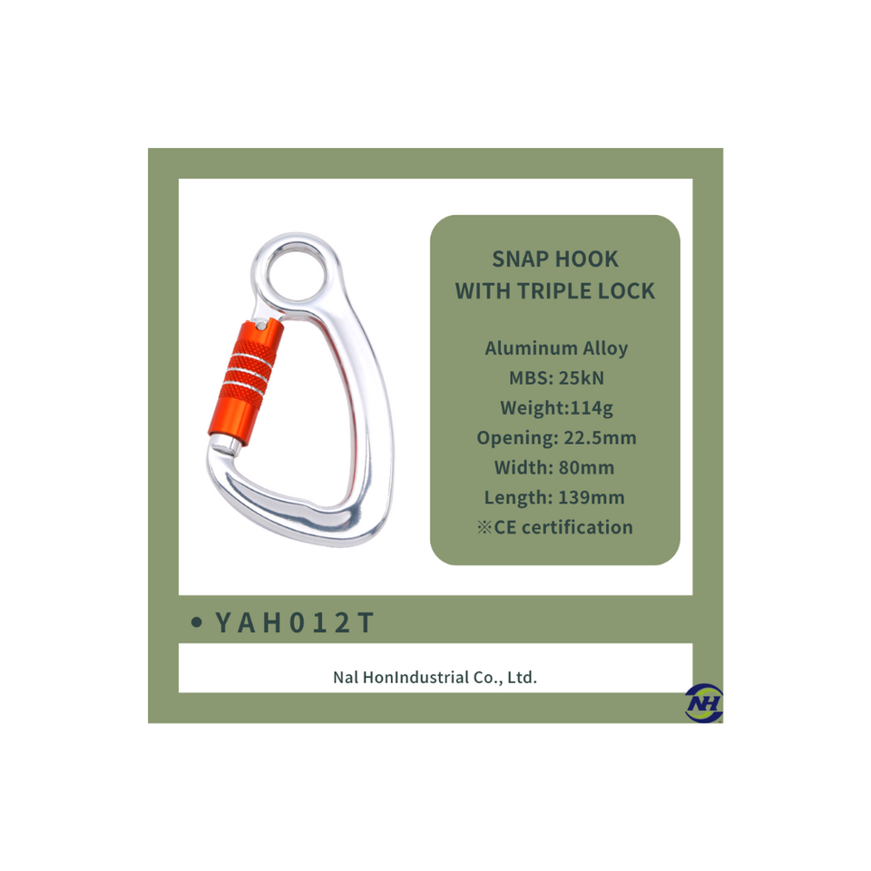 Gancho a presión de triple Bloqueo de aleación de aluminio YAH012T EN362 Escalada segura certificada