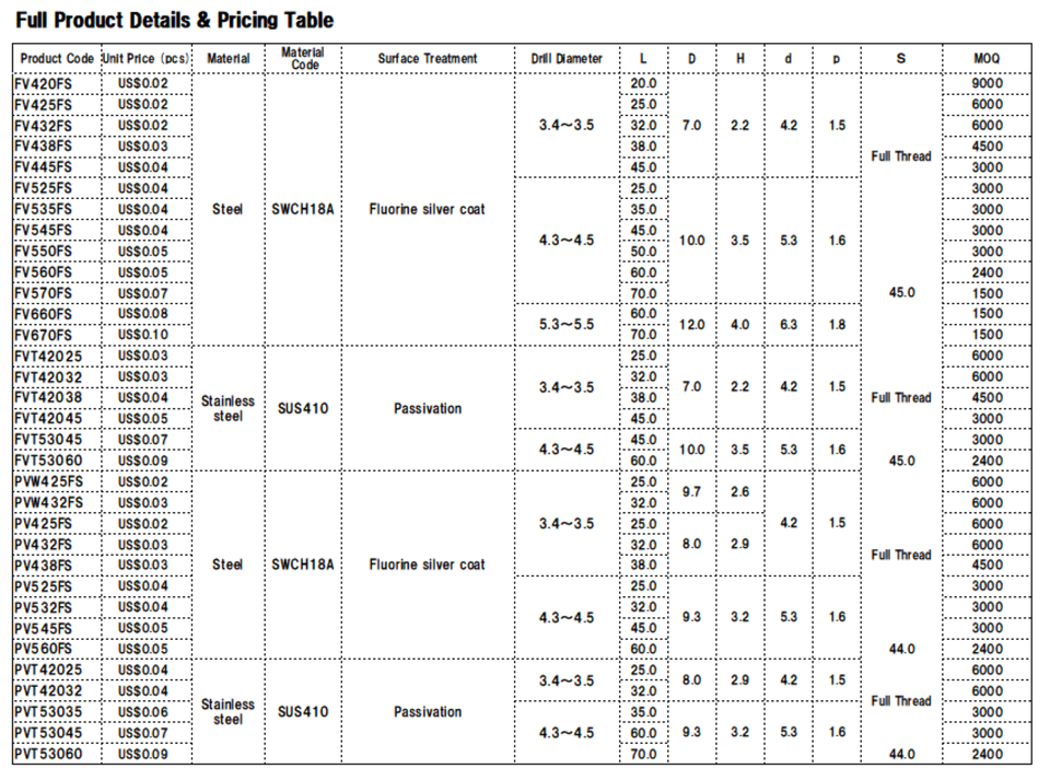 Chrome-free coating (e.g. trivalent chromate)Acabado