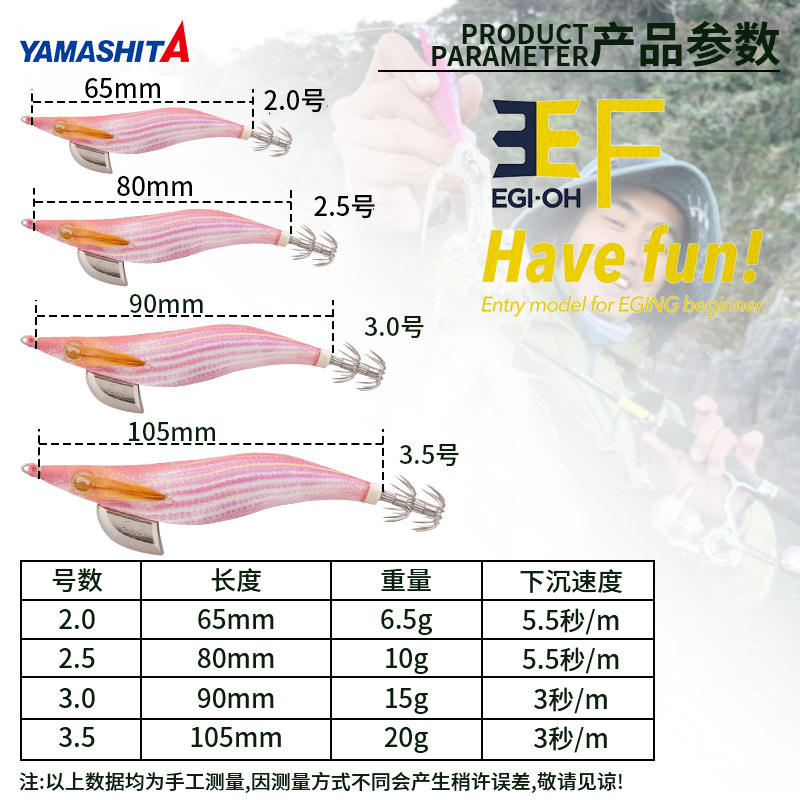 YAMASHITA 2.0 # 2.5 # 3.0 # 3.5 # EGI-OH Serie F Tubo Luminoso de Madera para Atraer Camarones y Calamares, Ideal para Pesca en Agua Dulce de Río