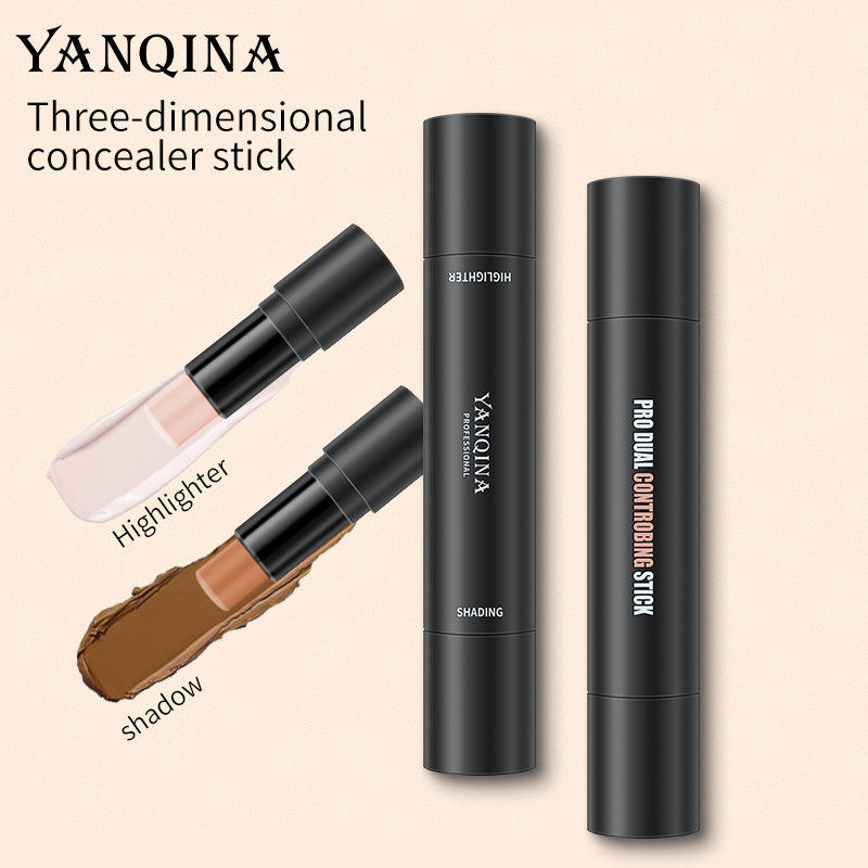 YANQINA Fijador de Maquillaje de Alto Brillo, Contorno, Barra de Maquillaje Facial Estéreo de Doble Cabeza, Modelo B8506