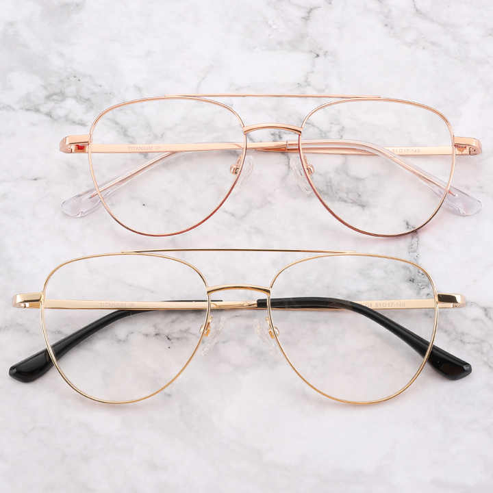 Gafas Ópticas de Titanio Puro de Alta Calidad con Doble Puente y Diseño de Aviador, Disponibles en Fábrica YC