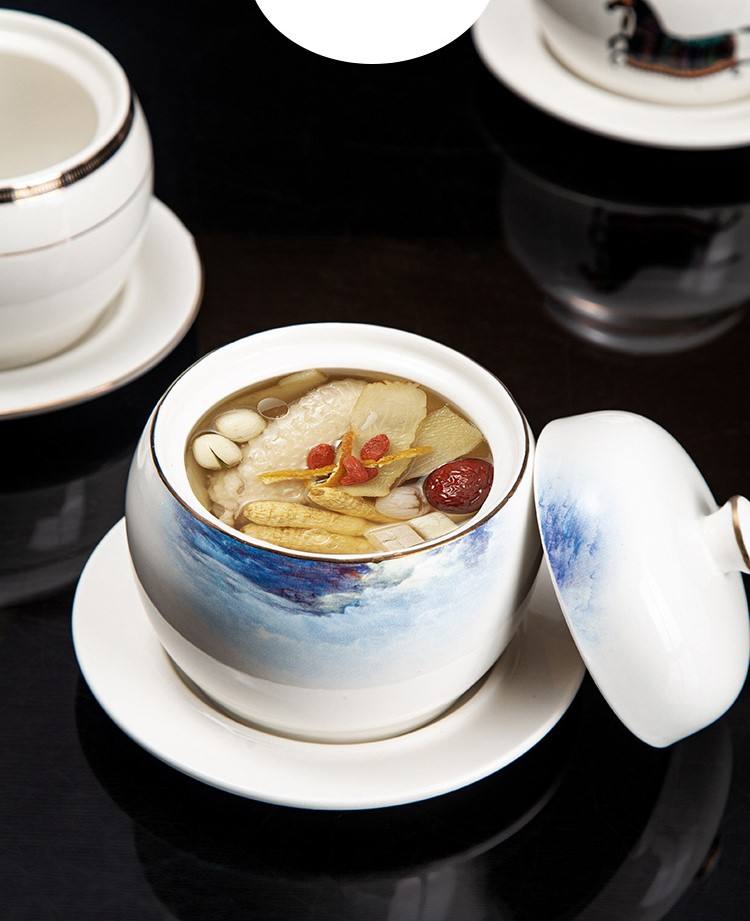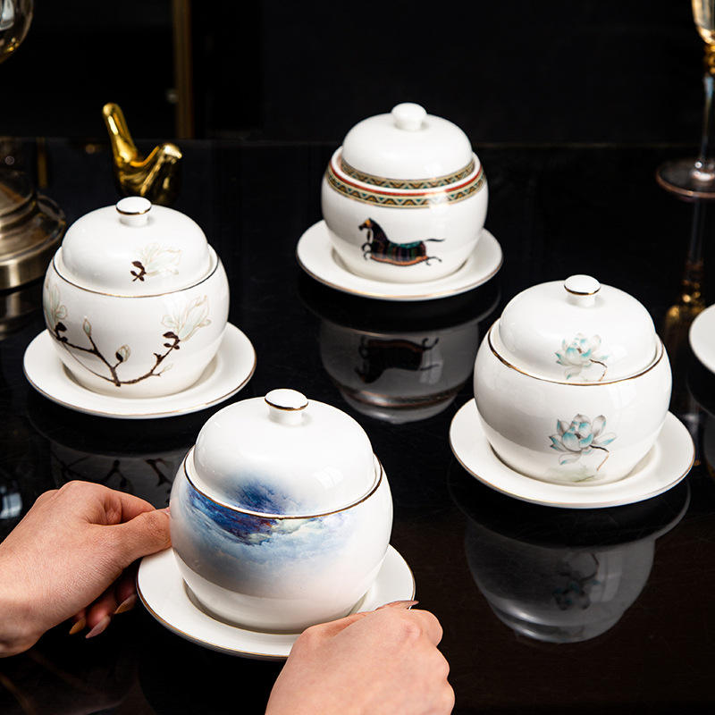 Olla de Cerámica YCPS12 con Borde Dorado, Tazón para Sopa, Olla Separadora de Agua para Nido de Pájaro, para Uso Doméstico y Hotelero con Logotipo Personalizado