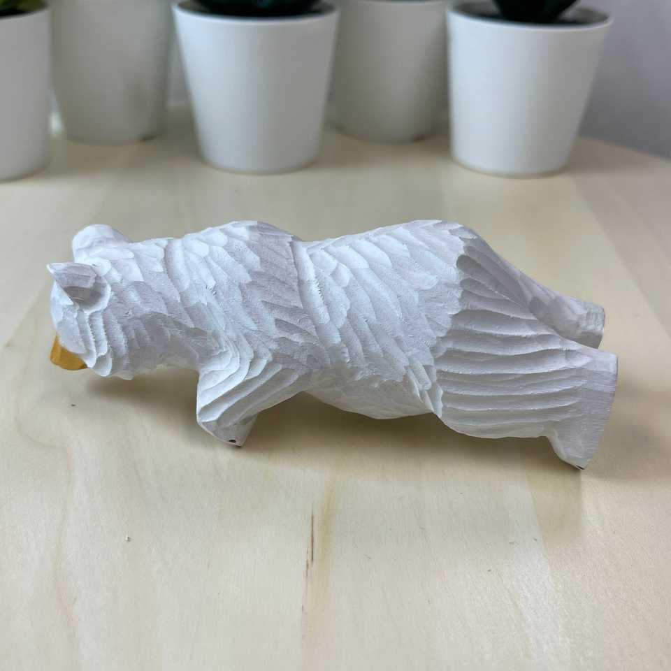 YEEYAYA tallada a mano 5 \ "Oso Blanco escultura de madera regalo de Navidad estatua de madera para decoración del hogar animales salvajes decoración de la habitación