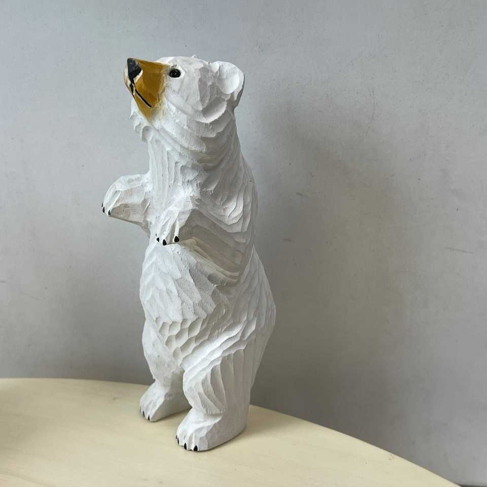 YEEYAYA Escultura de Oso Blanco Tallada a Mano de 5 Pulgadas, Figura Navideña y Estatua Decorativa para el Hogar, Animales Salvajes, Decoración de Habitaciones