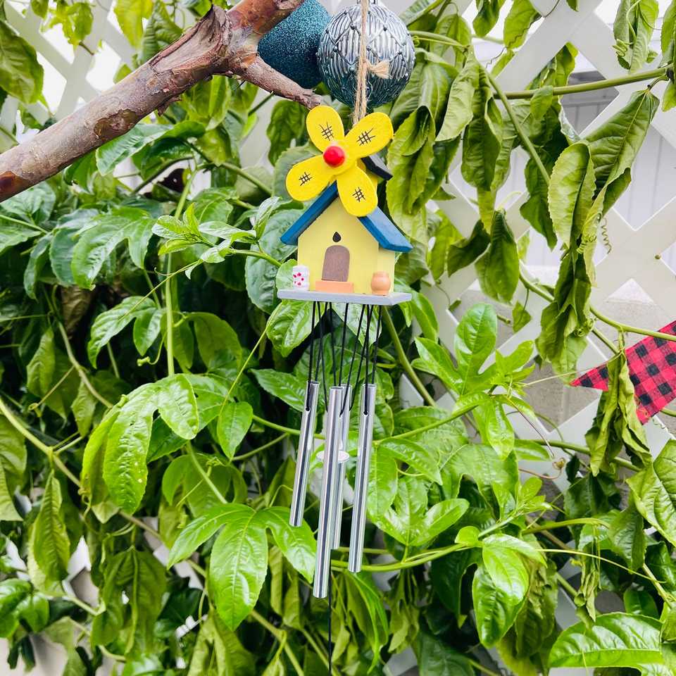YEEYAYA hecho a mano moderno y Retro casa de madera carillón de viento Mini colgante para meditación al aire libre y decoración de jardín Material de Metal