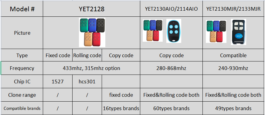 Nombre:YET2130 control remoto inalámbrico duplicado de frecuencia múltiple rf