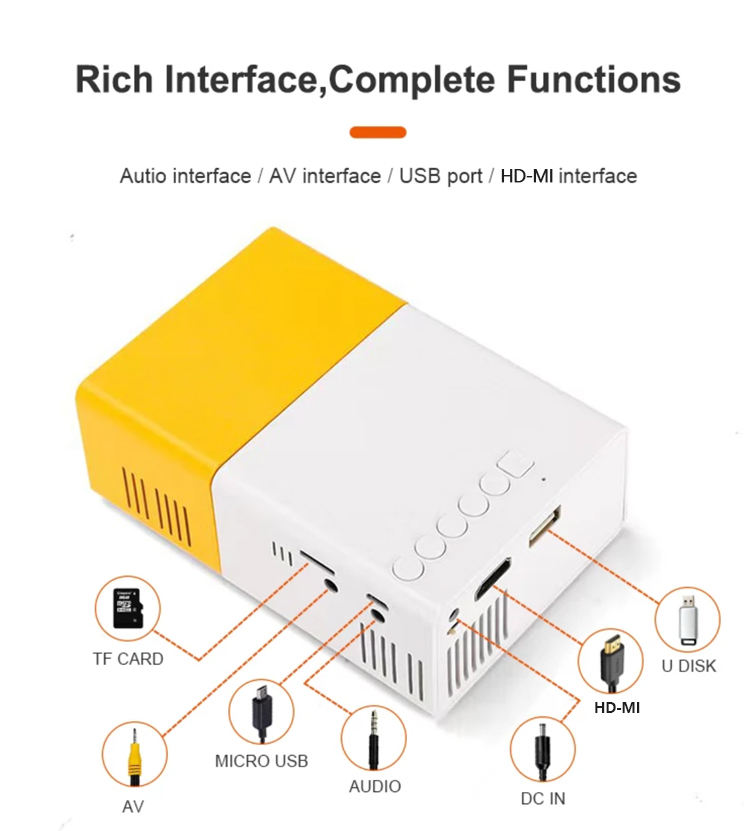 Mini Proyector Inteligente de Bolsillo YG300, Proyector LED Fácil de Usar, Puerto USB, Diseño de Cine Portátil