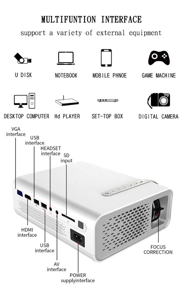 Nombre del producto:YG530 proyector Mini Teatro en Casa