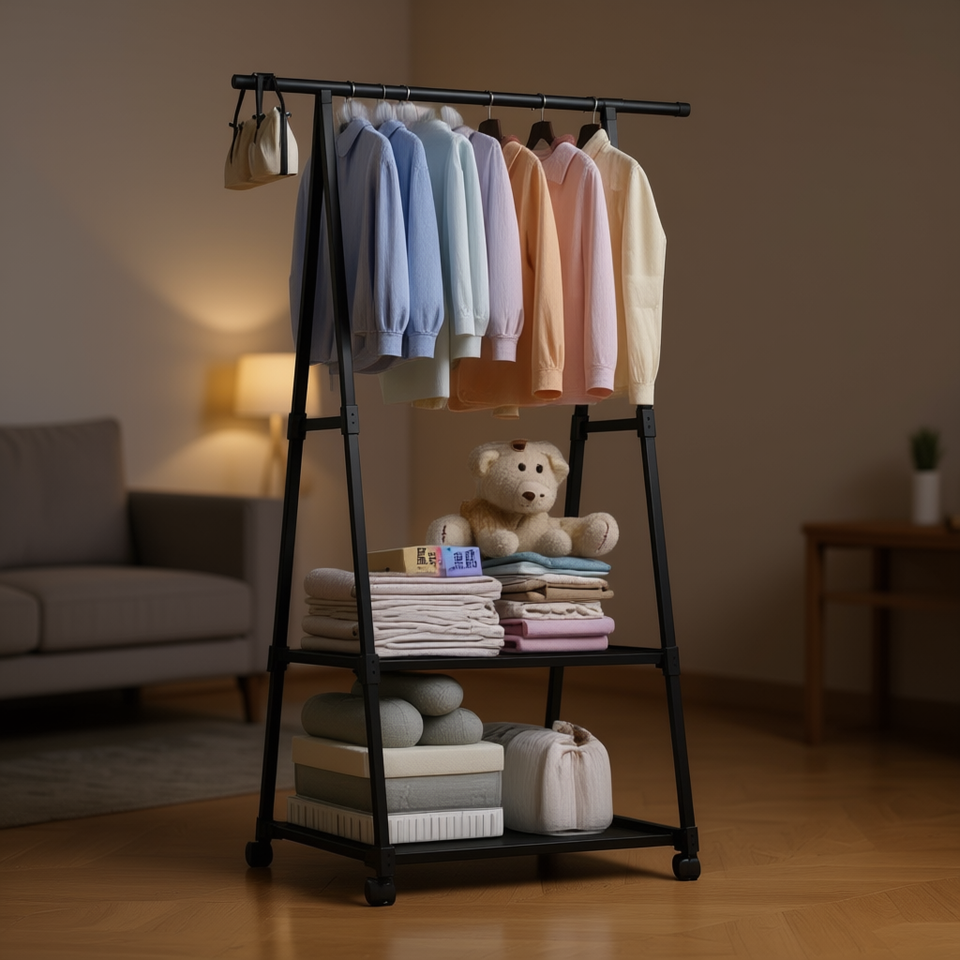 On Teck Sa De Cv Moderno Perchero de Pie con Trípode, 2 Estantes, 10 Ganchos, de Metal, para Dormitorio y Sala de Estar