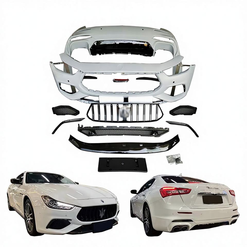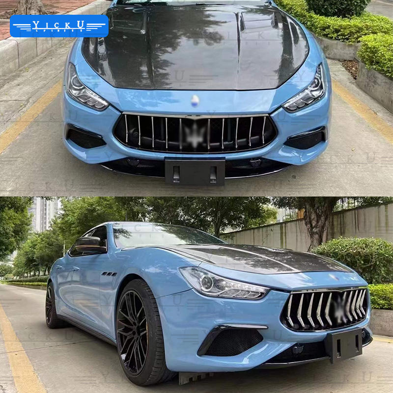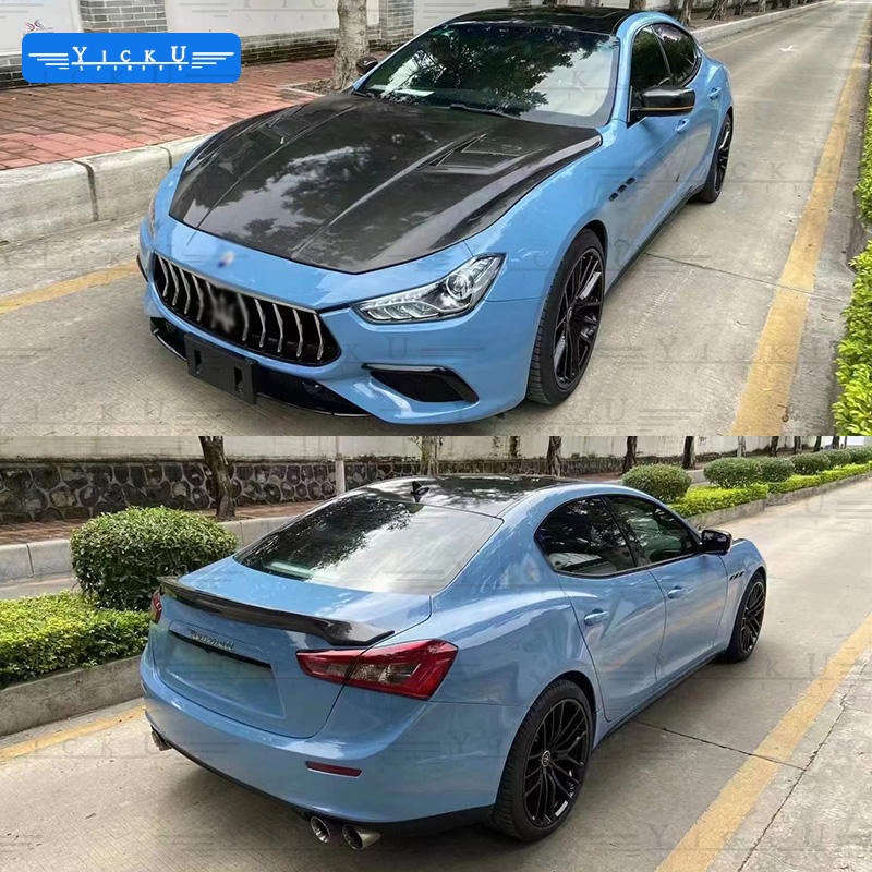 Kit de carrocería de PP de alta calidad YICKU para Maserati Ghibli 2014-2021 actualización GTS parachoques delantero parachoques trasero fibra de carbono Tuyere labio delantero