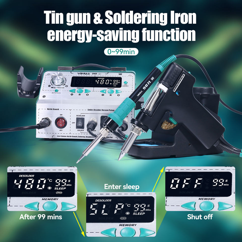 YIHUA 948-II Estación de Retrabajo Multifunción para Desoldar y Soldar con Pistola de Aire Caliente Herramienta de Precisión para Reparación Electrónica