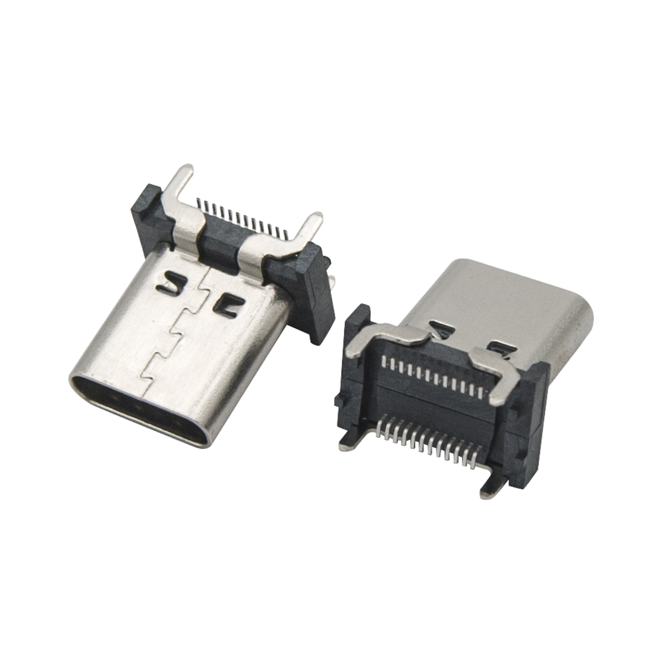 Conector USB Tipo C 6P Vertical para PCB, Chapado en Oro, Modelo 25-1 Gris, con Opciones de Longitud, Marca YILI