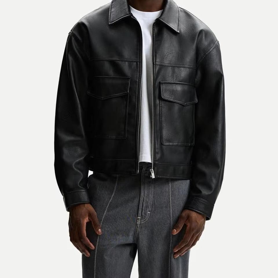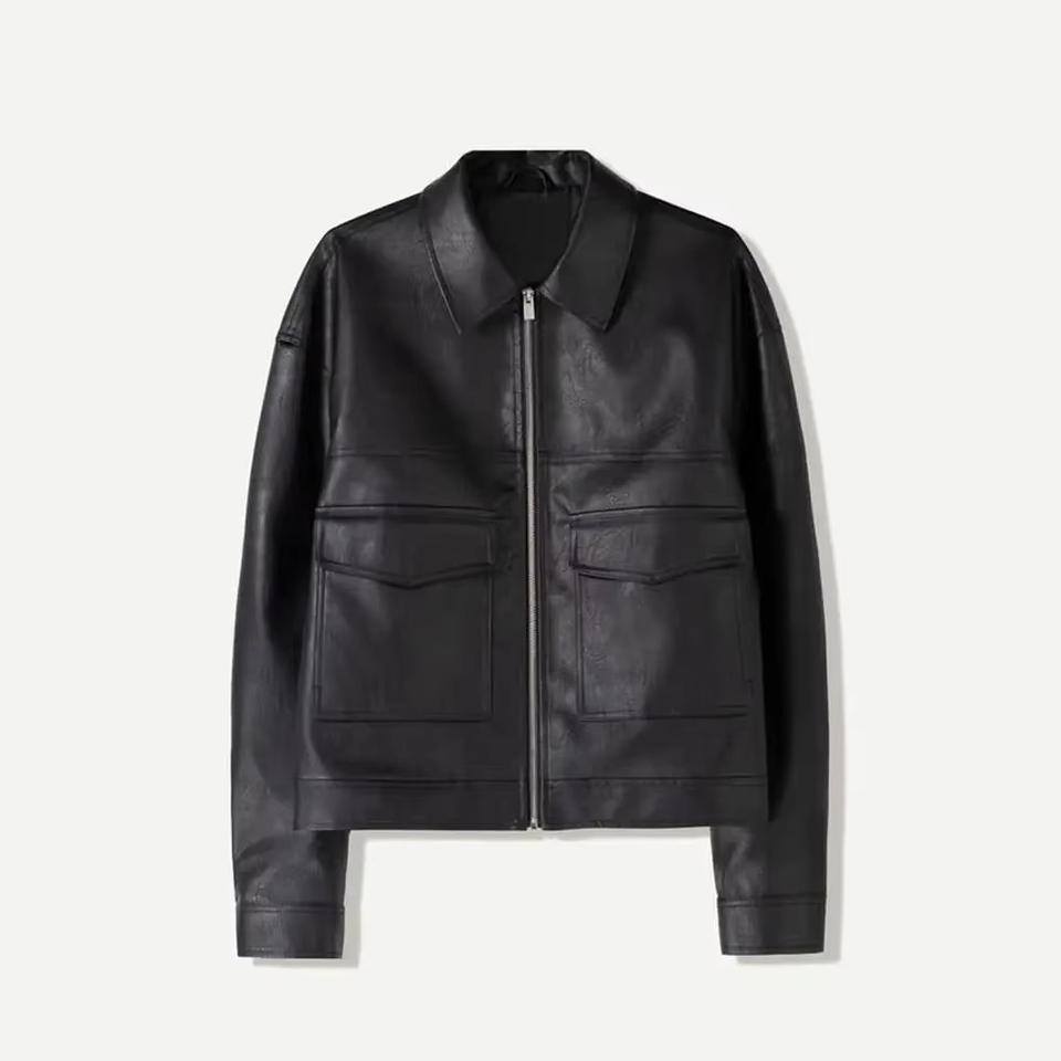 Material de cuero PU: El material de cuero PU proporciona una superficie duradera y resistente al agua, ideal para mantener la apariencia y funcionalidad de la chaqueta en diversas condiciones climáticas.