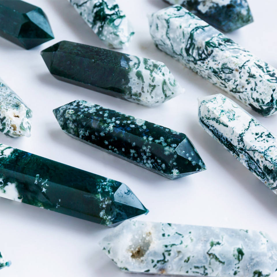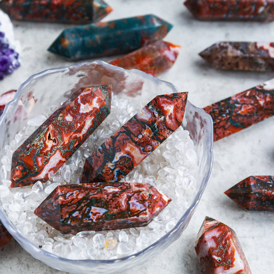 YINGLAI - Cristal Natural de Ágata Musgosa Roja de Doble Punta, Cristales Curativos para Feng Shui, Objetos de Colección Artísticos
