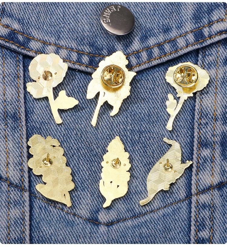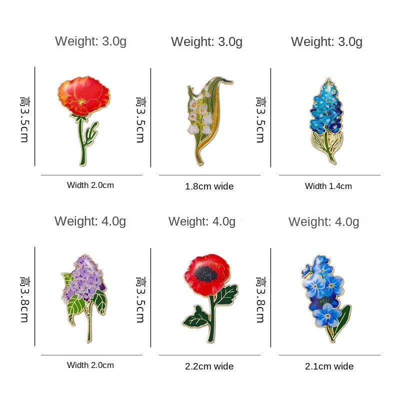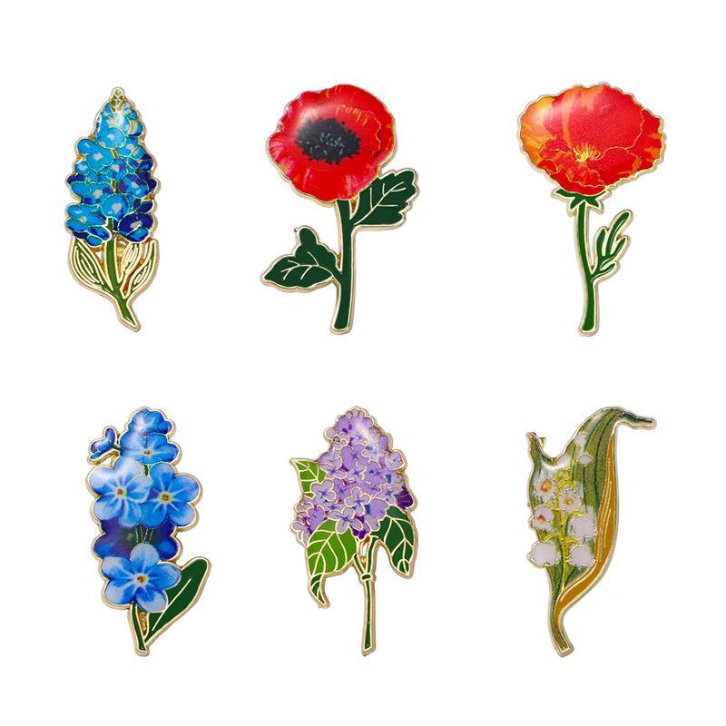 YINI Fabricante Venta al por mayor de alfileres de esmalte de aleación de zinc impresos personalizados-Rpins de flores realistas Forget-Me-Not, Lily of the Valley, Etc.