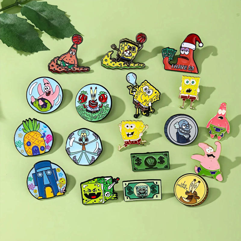 YINI Fabricante al por Mayor Pines Personalizados de Dibujos Animados Lindos de Bob Esponja, Insignia de Estrella de Patricio, Pequeños Pines de Metal Fundido para Ropa y Bolsos