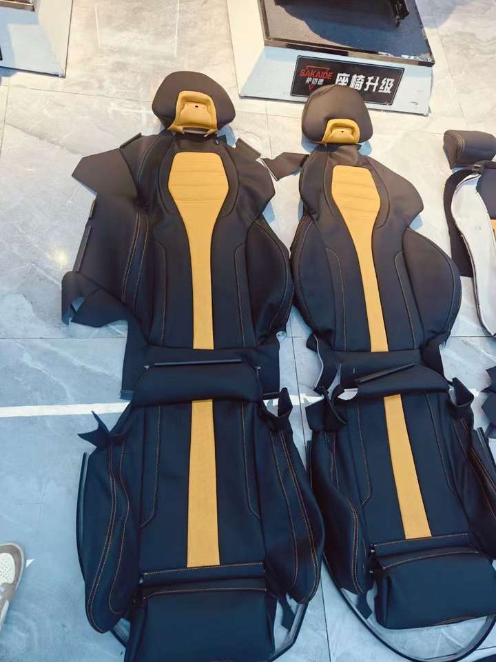 Fundas de Cuero para Asientos Delanteros y Traseros YLA, Negras y Amarillas con Fondo Amarillo, para BMW y Audi