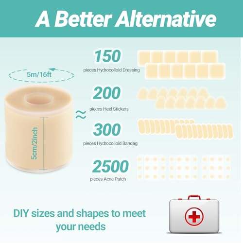 YOJO Parche de Vendaje en Rollo Hidrocoloide Autoadhesivo, Impermeable, Flexible, Ultra Absorbente, Esterilizado con EO, Tamaño Extra Grande