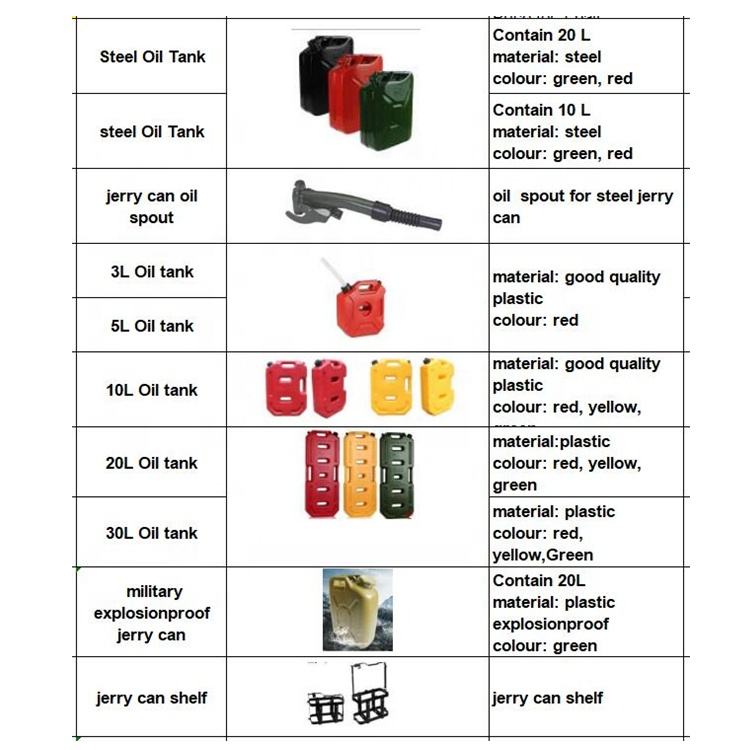 Grado Jerry Cans 20L a prueba de explosiones Camper 4wd Accesorios Tanque de aceite