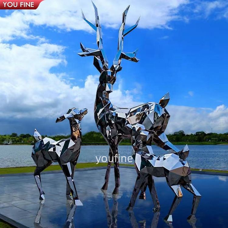 Escultura Geométrica de Acero Inoxidable de Familia de Ciervos