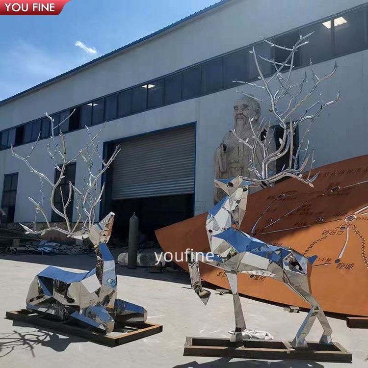 YOUFINE Escultura de Ciervos Geométrica de Acero Inoxidable, Estatua de Animal Metálica Moderna Abstracta de Tamaño Personalizado para Jardín Exterior