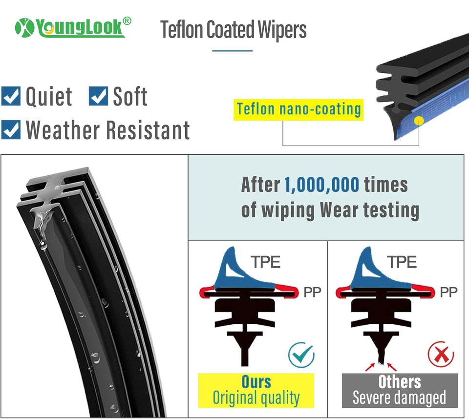 YOUNGLOOK YL-631 Escobilla Limpiaparabrisas Híbrida Multifunción Directa de Fábrica, Estructura sin Hueso, Resistencia a los Rayos UV, Temperatura -40~80
